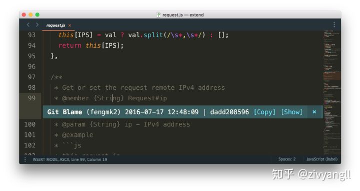 我遨游在 GitHub 中,寻找着 VIM 适合的查询插件,tpope/vim-fugitive 太重,没有个轻量的插件么?git-blame.vim 横空出世!先看效果: