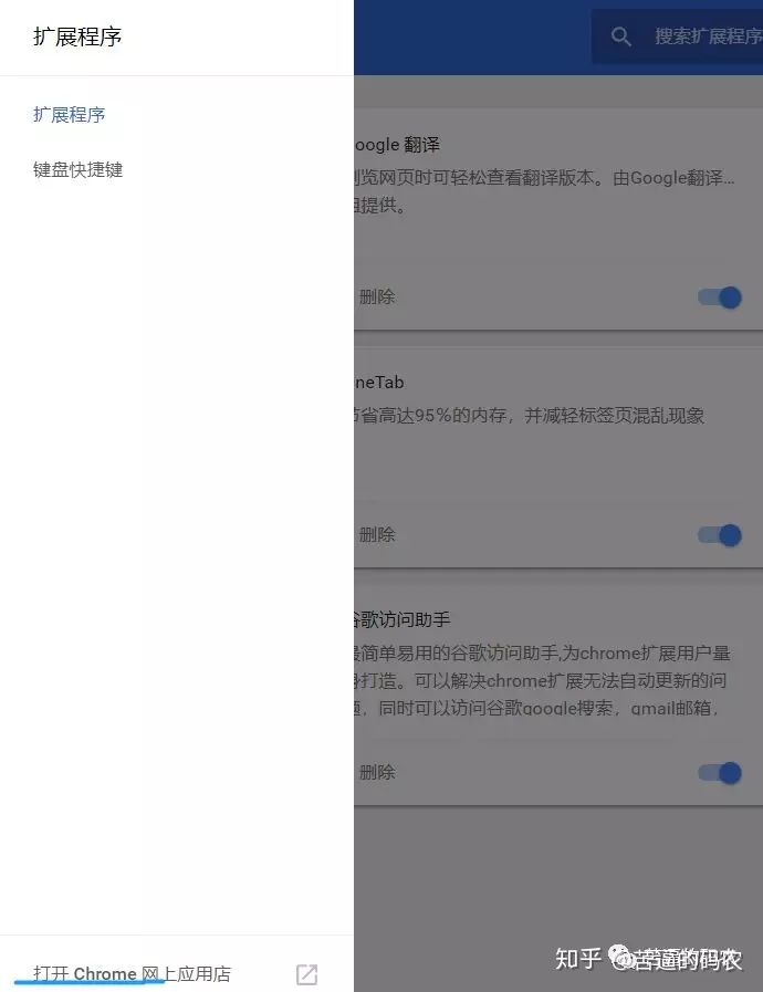 然后点击【拓展程序】就可以看到Chrome网上应用商店了