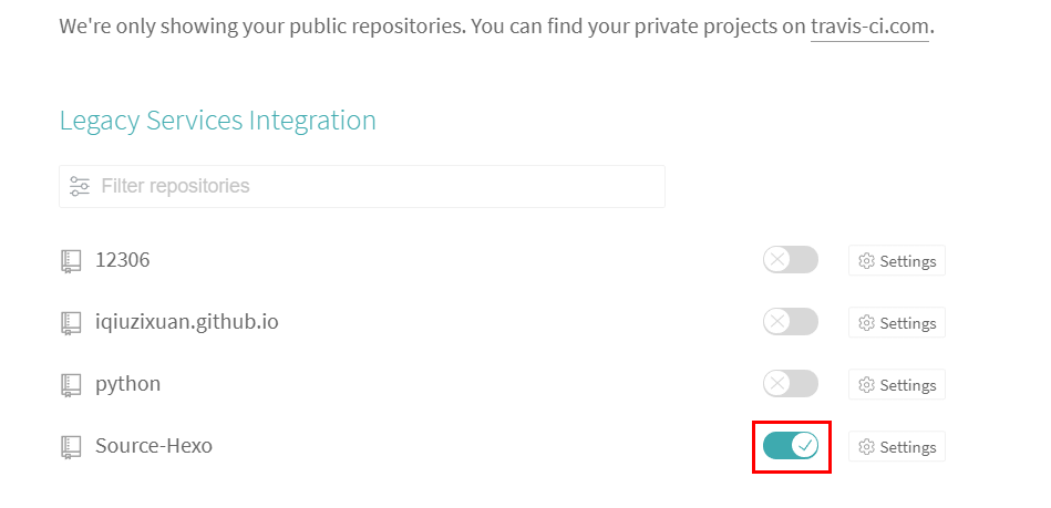 然后可以看到当前账号的所有代码仓库,接下来将博客项目的状态设置为启用。