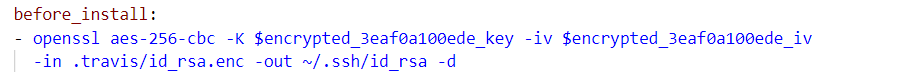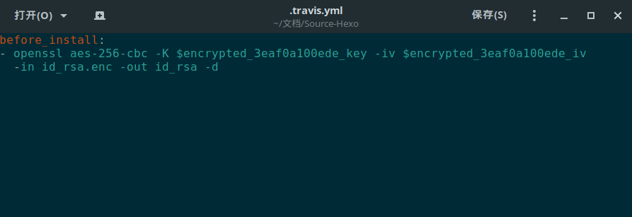 首先我们要改一下生成的解密信息,因为这个里面的in和out的文件位置是相对于本地环境来生成的,如果在Travis上面跑的时候位置会发生变化这样运行的时候就会报错,改完之后大概这样子: