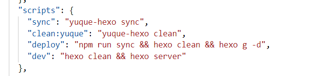 还在配置一下命令,不然编译生成的时候不会同步语雀的文章,也在package.json文件中配置
