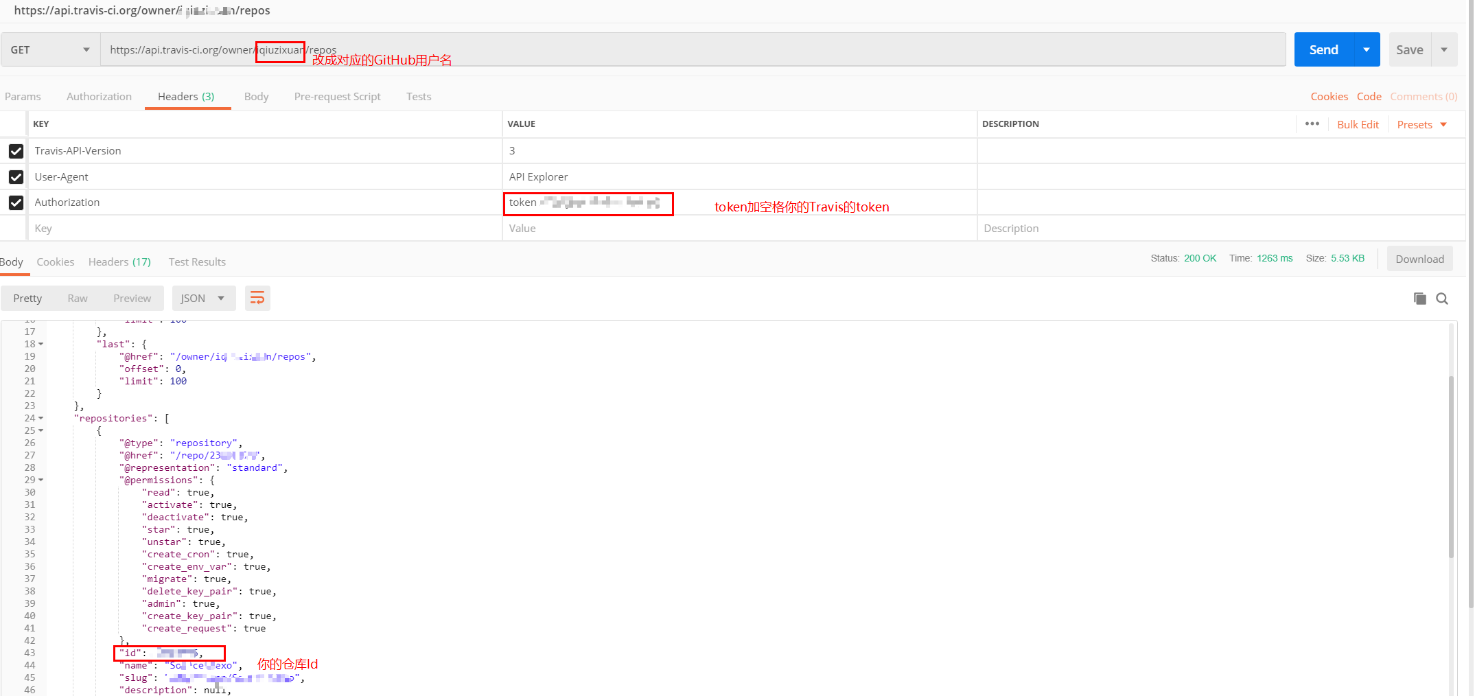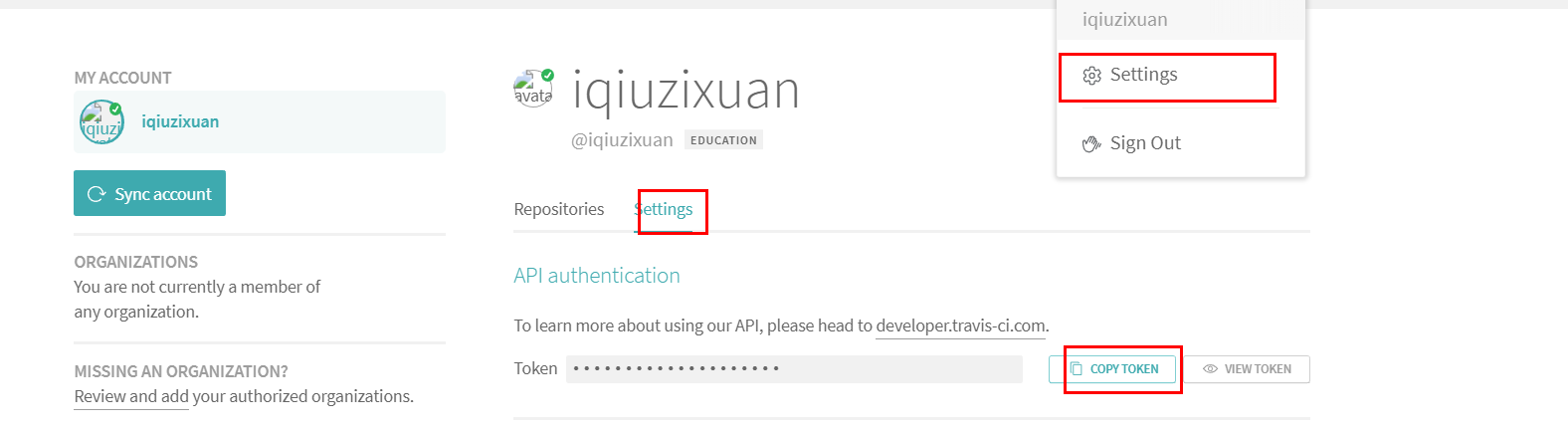 - travis登录token,在travis-ci.org 中设置界面获取: