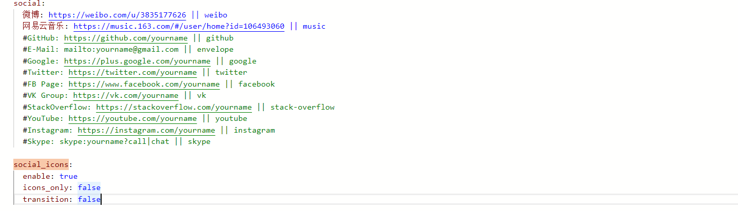 在主题配置文件找到social,添加需要的就可以,具体如下图