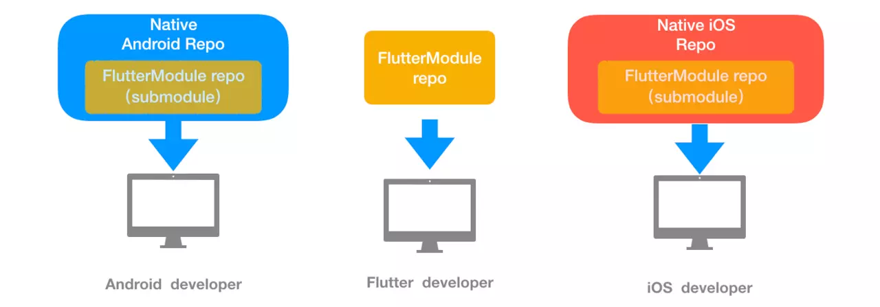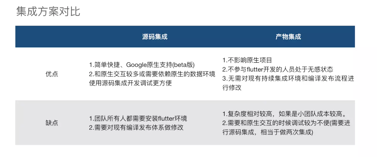 产物集成: Flutter项目单独开发,开发完成后发布成aar包或者iOS的framework形式,原生项目依赖flutter输出的制品即可。具体可以参考闲鱼的文章