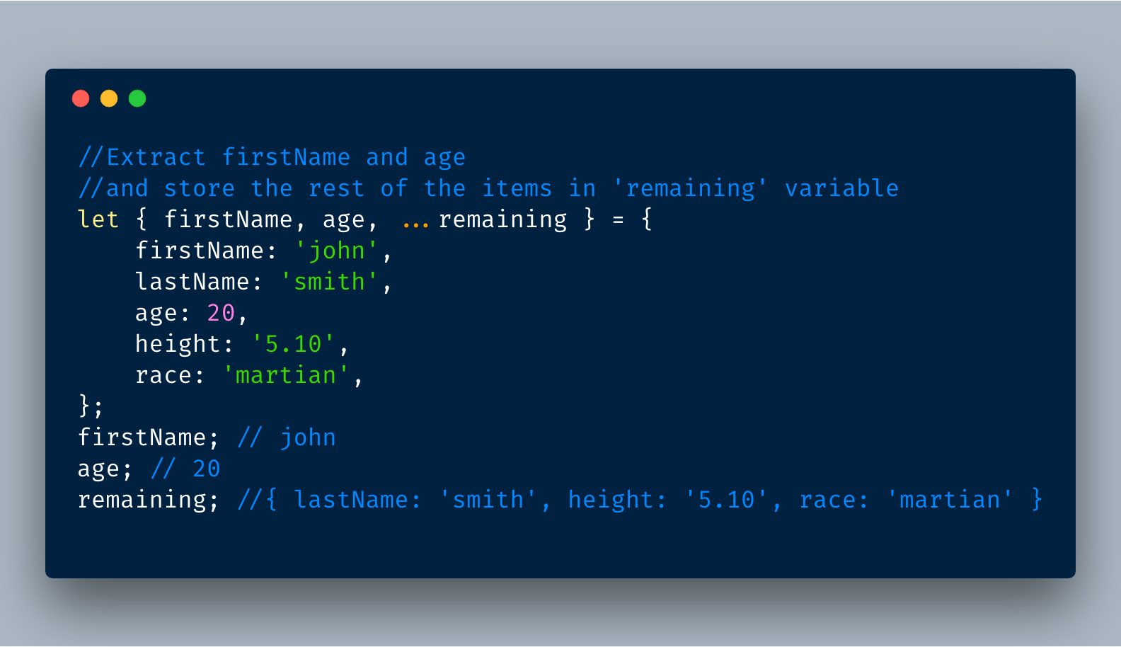 Rest 运算符 …(三个点)允许我们提取 Object 的剩余属性。
