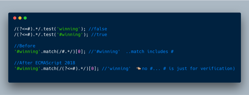 肯定断言:假设我们要确保 # 符号存在于 winning 之前(即:#winning),并希望正则表达式只返回字符串 “winning” 。下面是我们的做法: