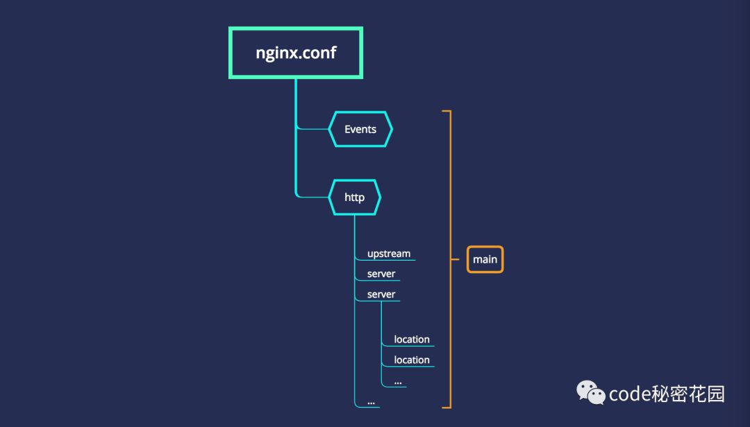 :可以嵌套多个server,配置代理,缓存,日志定义等绝大多数功能和第三方模块的配置。server