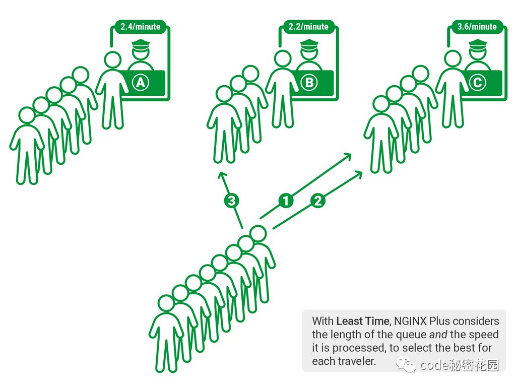 依赖于NGINX Plus,优先分配给响应时间最短的服务器。