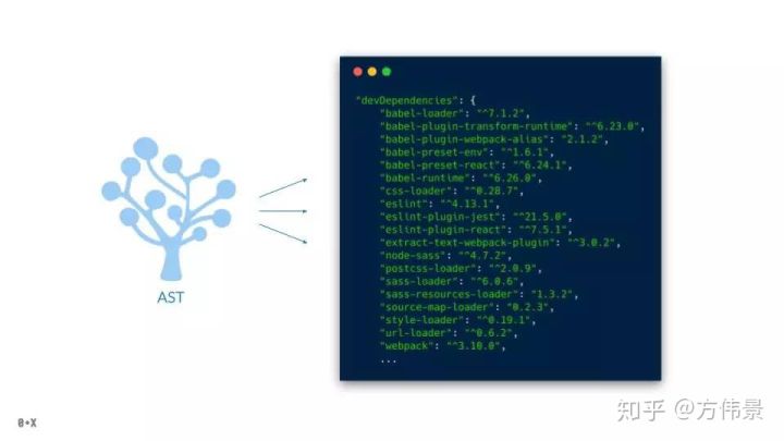 如果你查看目前任何主流的项目中的 devDependencies,会发现前些年的不计其数的插件诞生。我们归纳一下有:javascript转译、代码压缩、css预处理器、elint、pretiier,等。有很多js模块我们不会在生产环境用到,但是它们在我们的开发过程中充当着重要的角色。所有的上述工具,不管怎样,都建立在了AST这个巨人的肩膀上。