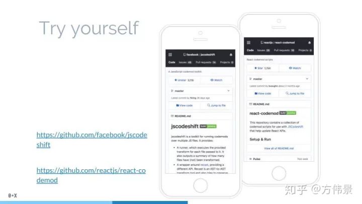 让我们继续,下一个用例,我想提到的是自动代码重构工具,以及神器JSCodeshift。