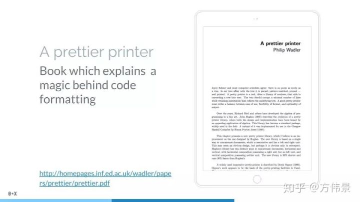 同样,如果你想学习更多在美化打印背后理论,这里有一本你可以深入的书 《A prettier printer》(http://homepages.inf.ed.ac.uk/wadler/papers/prettier/prettier.pdf)。