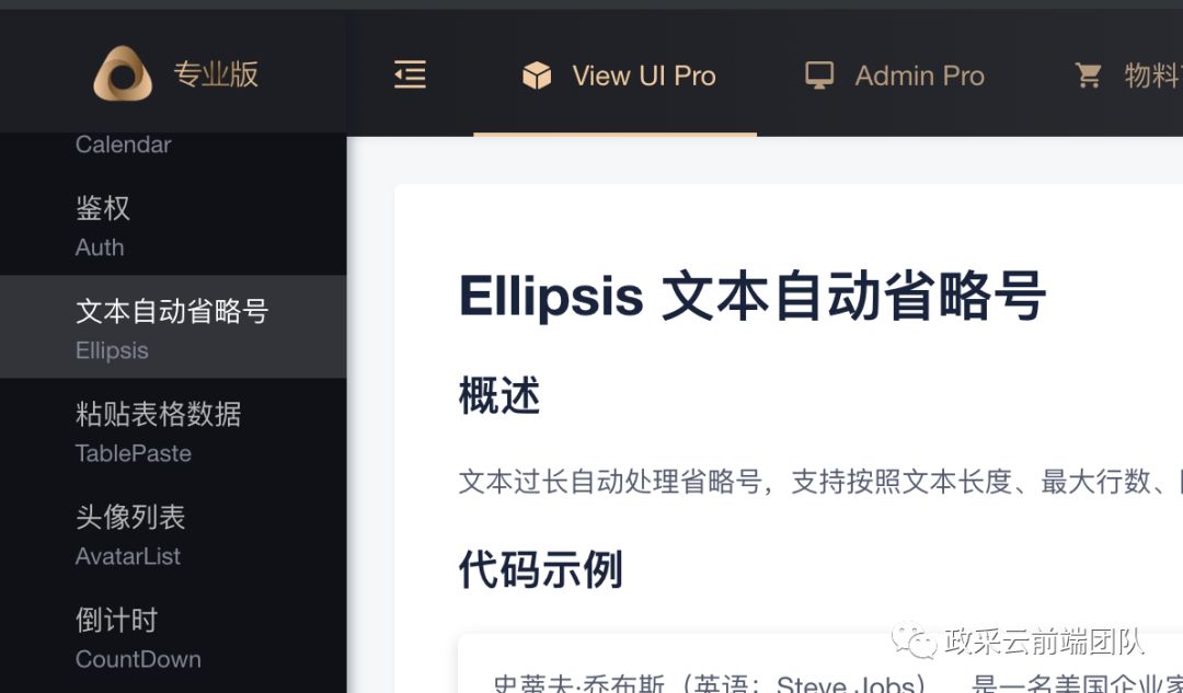 每次都要搞一坨代码,太麻烦。这时候你需要考虑将文本截断的能力,封装成一个可随时调用的自定义容器组件。市面上很多 UI 组件库,都提供了同类组件的封装,如基于 Vue 的 ViewUI Pro,或面向小程序提供组件化解决能力的 MinUI。