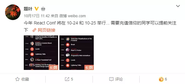 一年一度的 React 春晚: React Conf 即将到来,不知道今年会不会有什么惊喜,去年是 React Hooks,前年是 React Fiber…