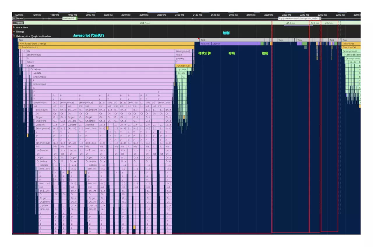 根本原因是渲染/更新过程一旦开始无法中断,持续占用主线程,主线程忙于执行JS,无暇他顾(布局、动画),造成掉帧、延迟响应(甚至无响应)等不佳体验