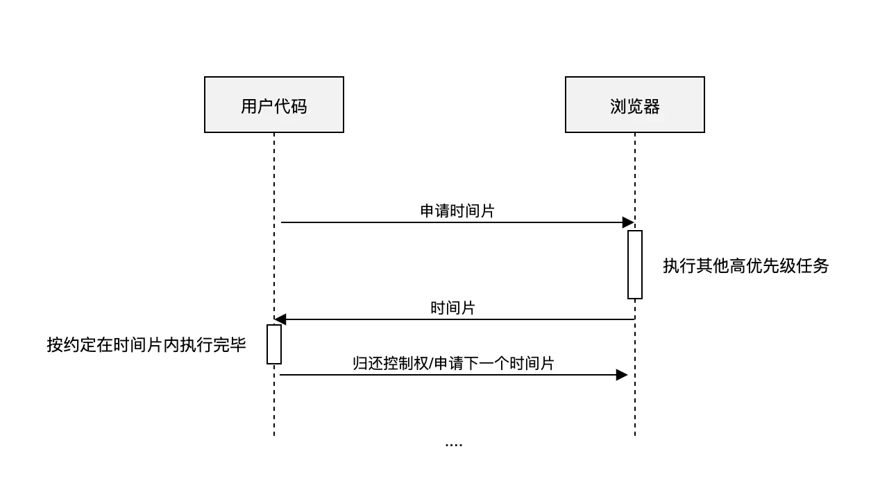 把渲染/更新过程拆分为小块任务,通过合理的调度机制来控制时间(更细粒度、更强的控制力)