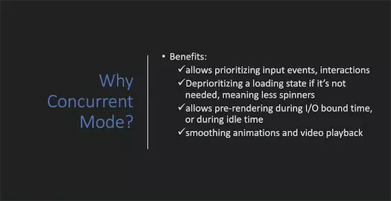 并行渲染的话,据说Firefox测试结果显示,130ms的页面,只需要30ms就能搞定,所以在这方面是值得期待的,而React已经做好准备了,这也就是在React Fiber上下文经常听到的待_unlock_的更多特性之一