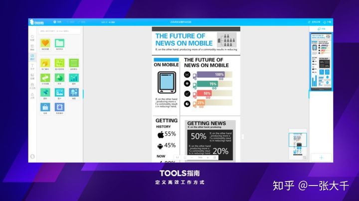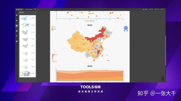 严格上来说创客贴不属于数据可视化工具,它不具备数据处理的能力,无法精确的导入数据。但它胜在效果强大,不需要任何设计基础,也不需要 PS AI 这样的专业图片软件,就能够做出非常惊艳的可视化效果。