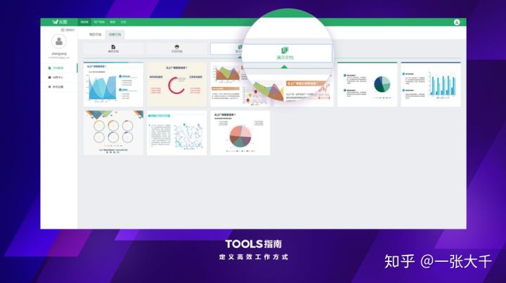 如果你需要公开演示的你报告,我推荐你制作的时候可以选择「演示文档」类型的模板: