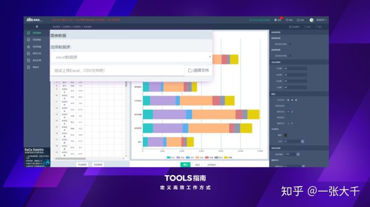 最赞的一点是,图表数据的导入和分享非常便捷。你可以直接上传 EXCEL 或者 CSV 格式的数据文件,图表就可以自动生成: